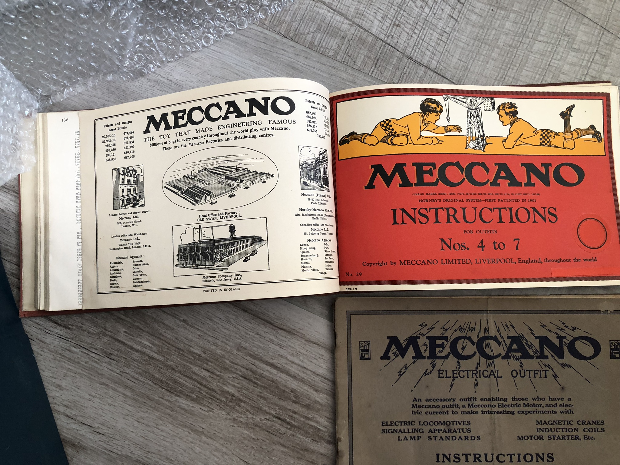 - Le manuel des pièces électriques est un original mais il a été exporté par Meccano pour le marché américain donc il porte un tampon au verso de la couverture